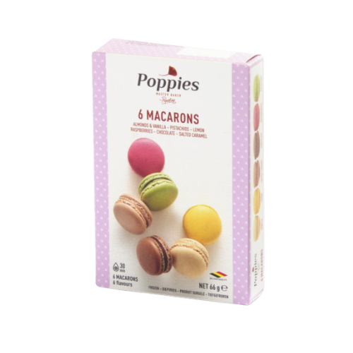 Les macarons de la marque Poppies allient raffinement et gourmandise avec leurs tendres coques colorées et leur garniture légère et savoureuse. Chaque macaron est soigneusement préparé, parfait pour une pause gourmande ou pour accompagner un moment de détente. Que ce soit pour une occasion spéciale ou simplement pour se faire plaisir, ces petites douceurs séduiront les amateurs de pâtisseries fines et de macarons. Servis avec une tasse de thé ou de café, ils ajoutent une touche d’élégance à vos moments de dégustation.